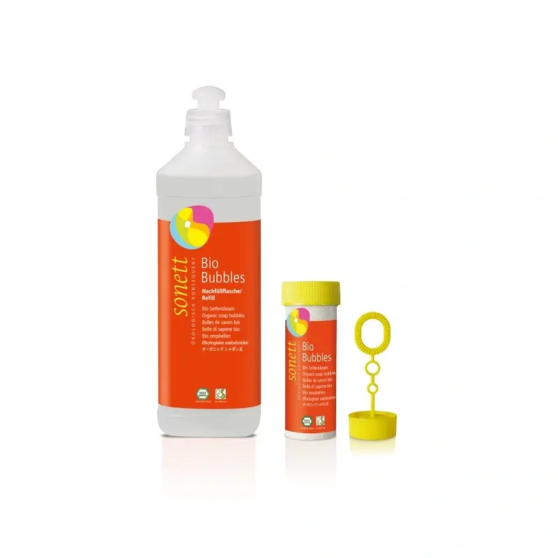 První bio mýdlové bubliny na trhu. Certifikace EcoControl a Ecogarantie. Doporučujeme použití ve venkovních prostorech.