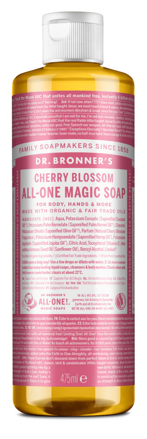 DR. BRONNER'S 'Tekuté univerzální mýdlo Cherry Blossonskladem 3 ks499 Kč/ ks412 Kč bez DPH