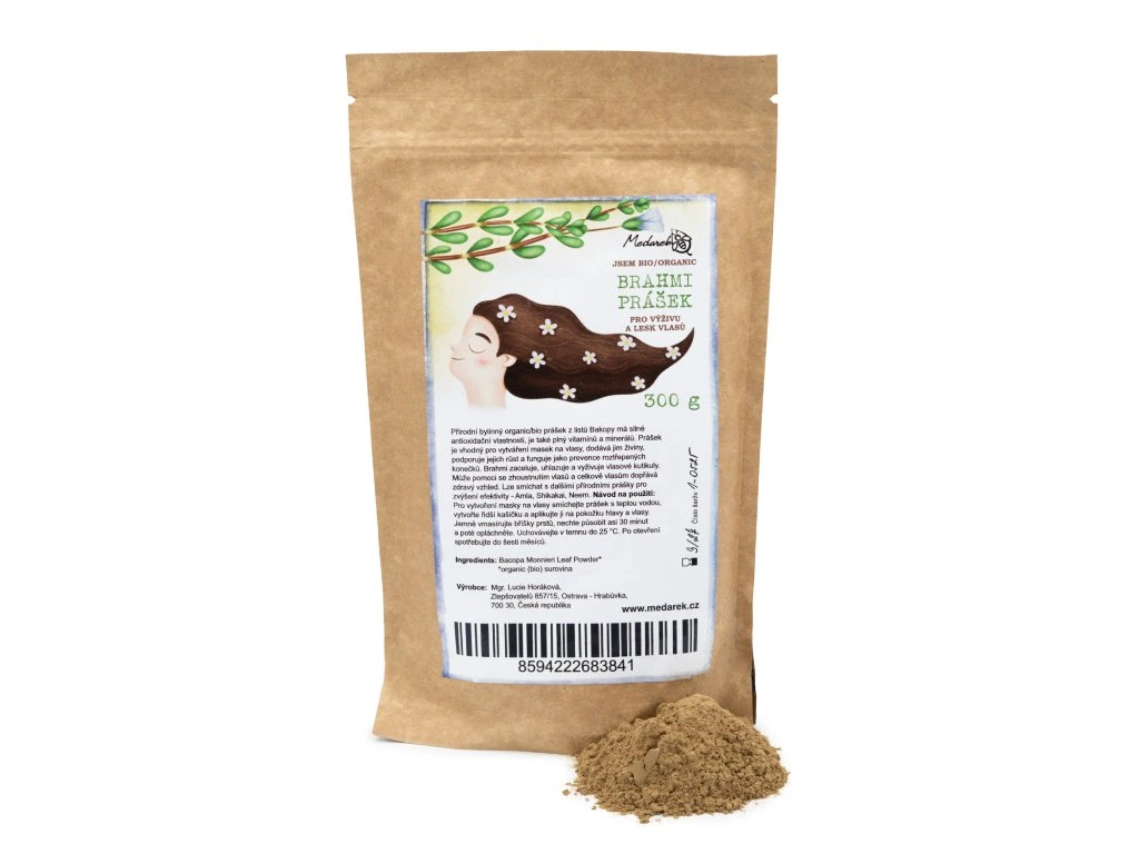 MEDAREK Brahmi prášek na vlasy bioskladem 1 ks357 Kč/ ks295 Kč bez DPH