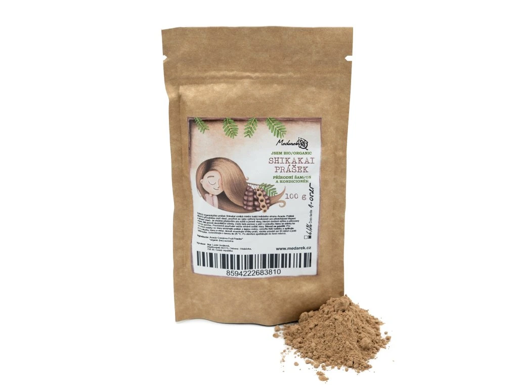 MEDAREK Shikakai prášek na vlasy bioskladem 7 ks161 Kč/ ks133 Kč bez DPH