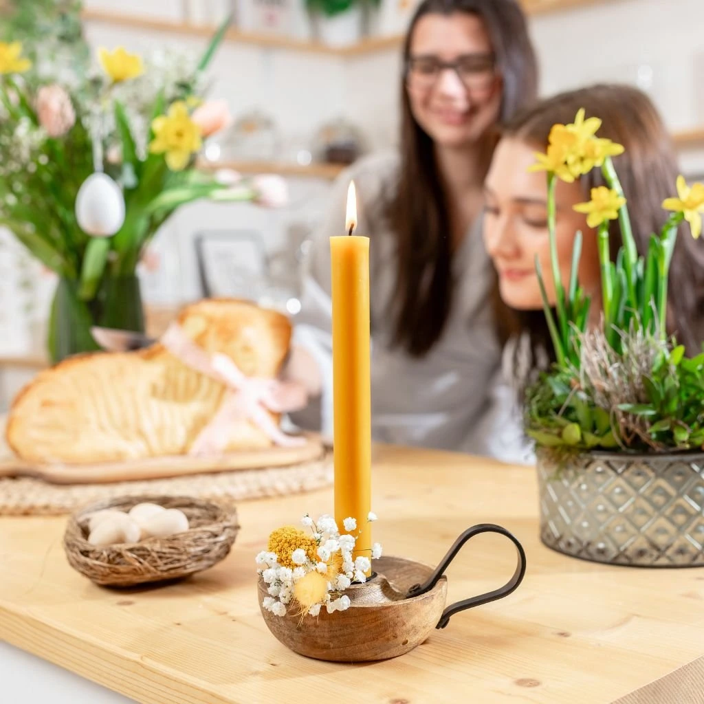 Svíce je vhodná do samostatných svícnů, i do jarních, podzimních, či vánočních dekorací. Je rovná, průměr svíce je 2 cm.